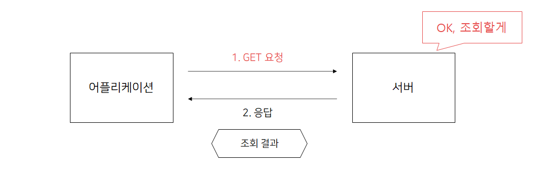 HTTP Method는 메세지를 수신하는 서버에서 어떤 작업을 해야 하는지를 알려준다. HTTP Method에는 GET, POST, PUT, PATCH, DELETE 등이 있다. <그림2>의 GET 메서드는 리소스를 조회하는 기능이다. 따라서 <그림3>과 같이 서버에서는 리소스 조회 후 결과값을 클라이언트에 반환해준다.