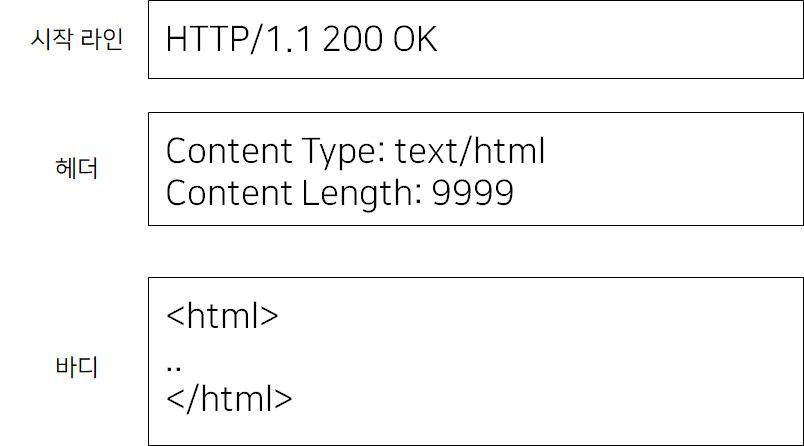 시작 라인은 요청 메세지인지 응답 메세지인지에 따라 다른 형식을 가진다.