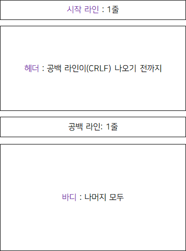 HTTP의 메세지는 3가지 부분으로 나뉘어져 있다.
