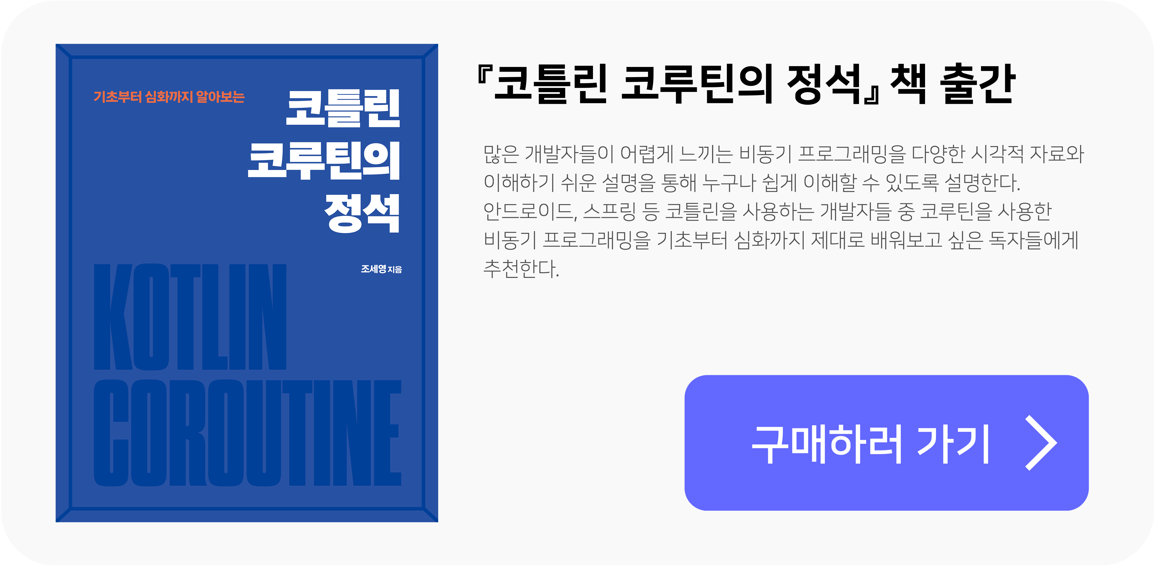 안녕하세요. '조세영의 Kotlin World' 기술 블로그를 운영 중인 조세영입니다. 이번에 제가 저술한 『코틀린 코루틴의 정석』, 책이 출간되었습니다.